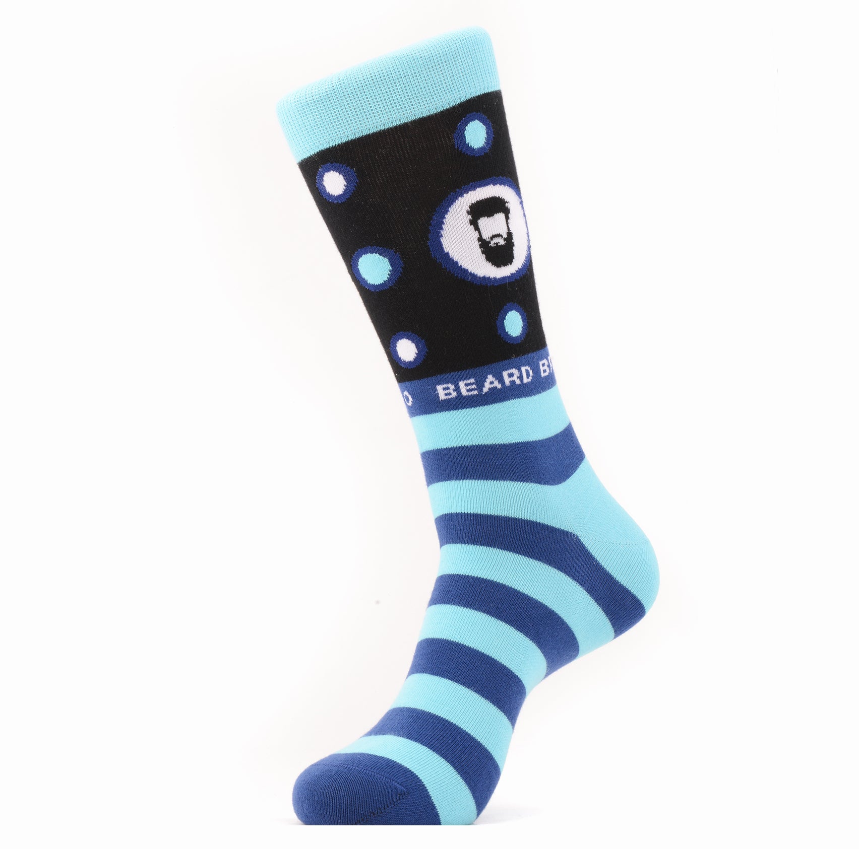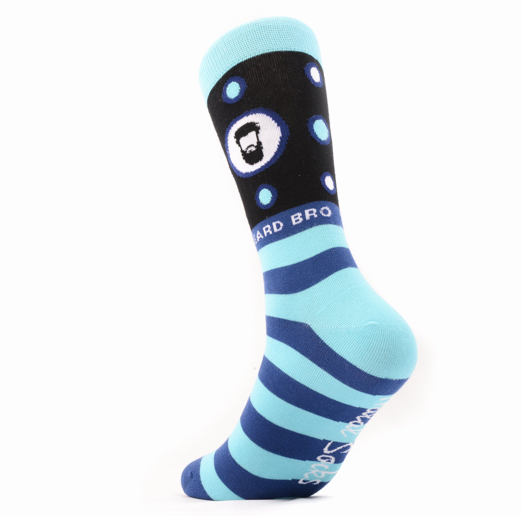 Elevate your style game with Beard Bro Blue socks! Designed for the man with a dapper beard, these socks feature our iconic logo and blue stripes, representing brotherhood and camaraderie. Also available in Red. Stand out from the crowd and join the brotherhood today!