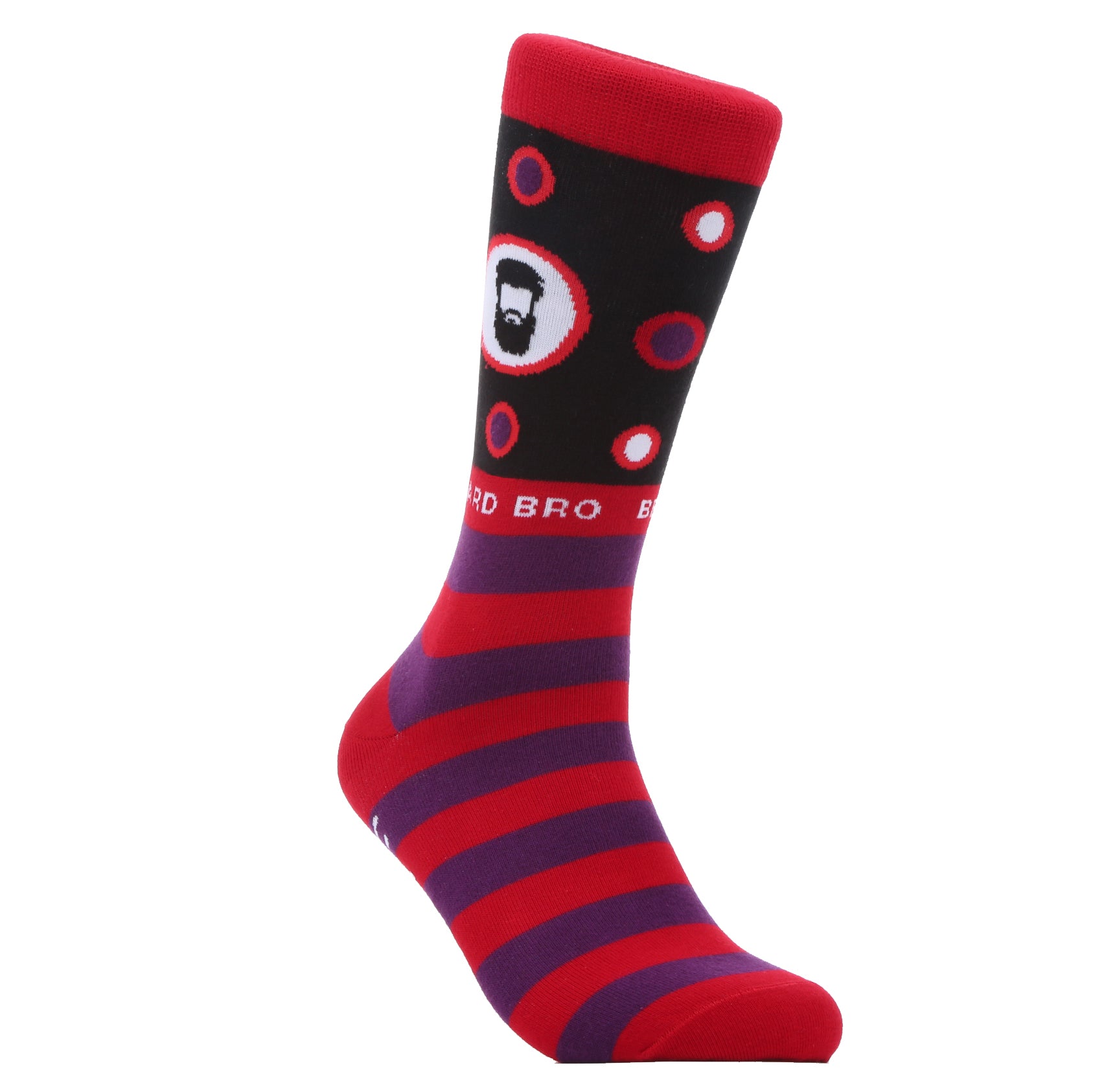 Elevate your style game with Beard Bro Red socks! Our iconic logo and blue stripes represent brotherhood and camaraderie, making these a must-have for the dapper bearded man. Also available in Blue. Join the brotherhood and stand out from the crowd today!