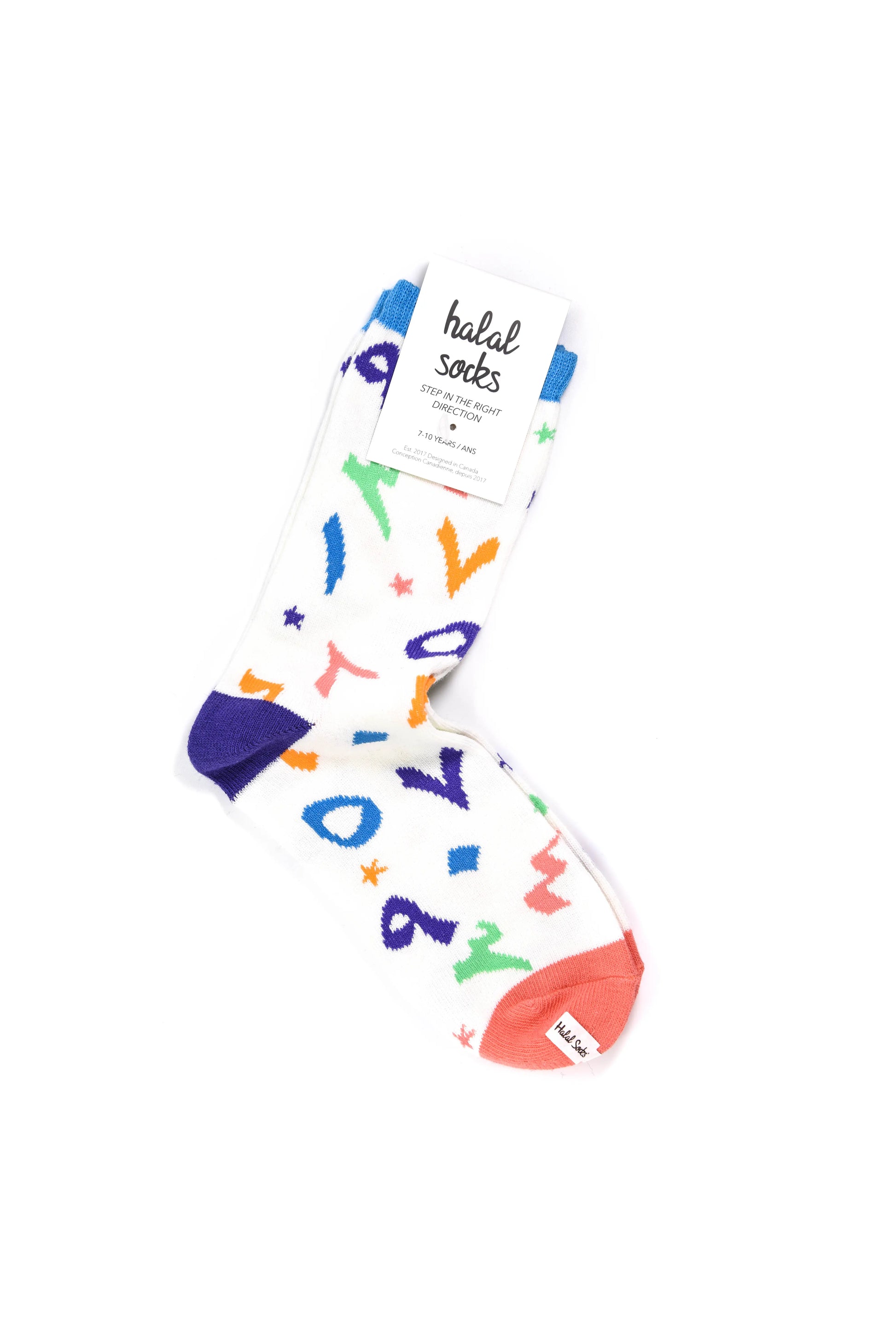 Introduce your child to Arabic numbers with our fun and colorful socks! Available in sizes for 4-6 year olds and 7-10 year olds, these socks are a must-have for teaching numbers in a unique and engaging way. Also available in an Arabic letter version.