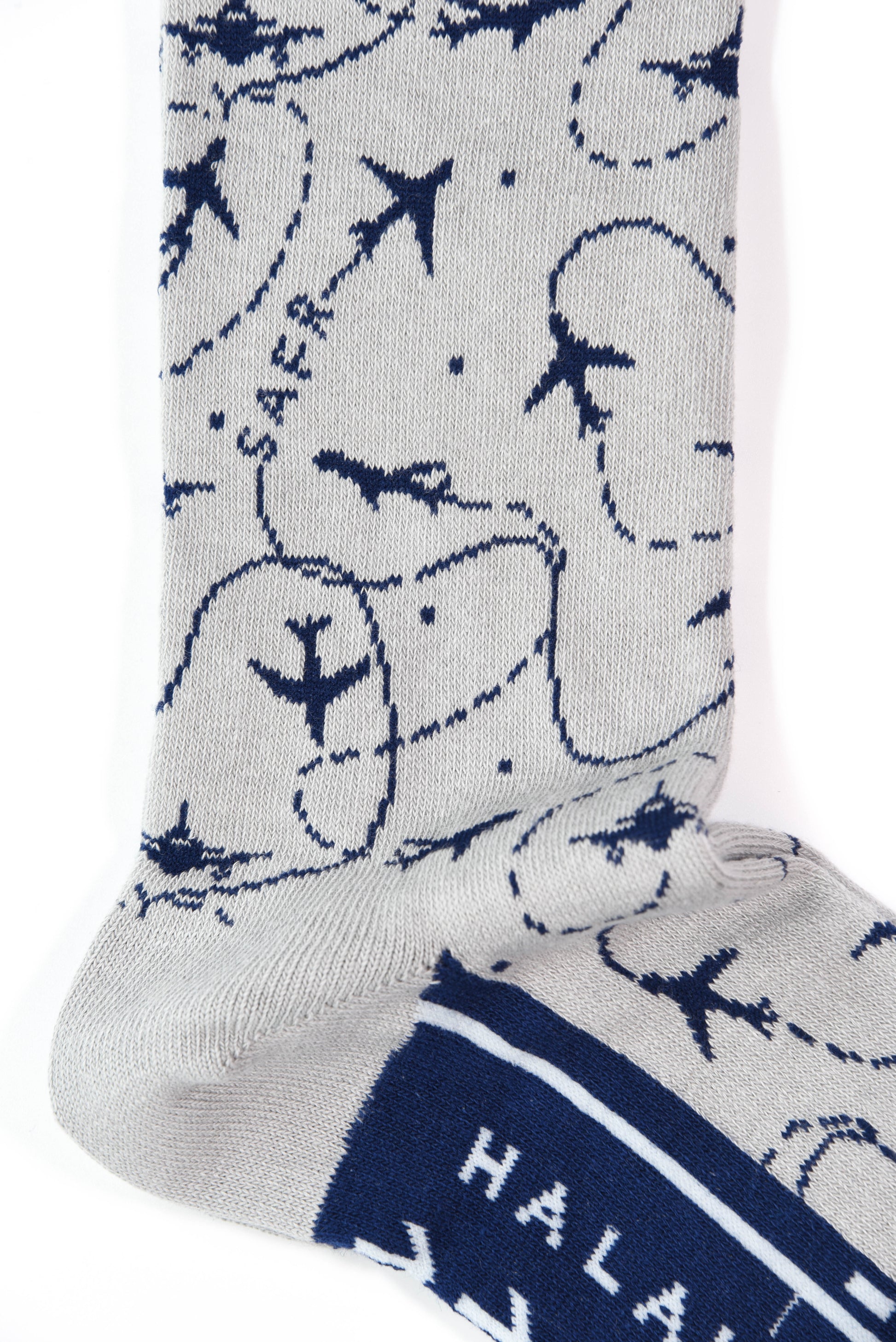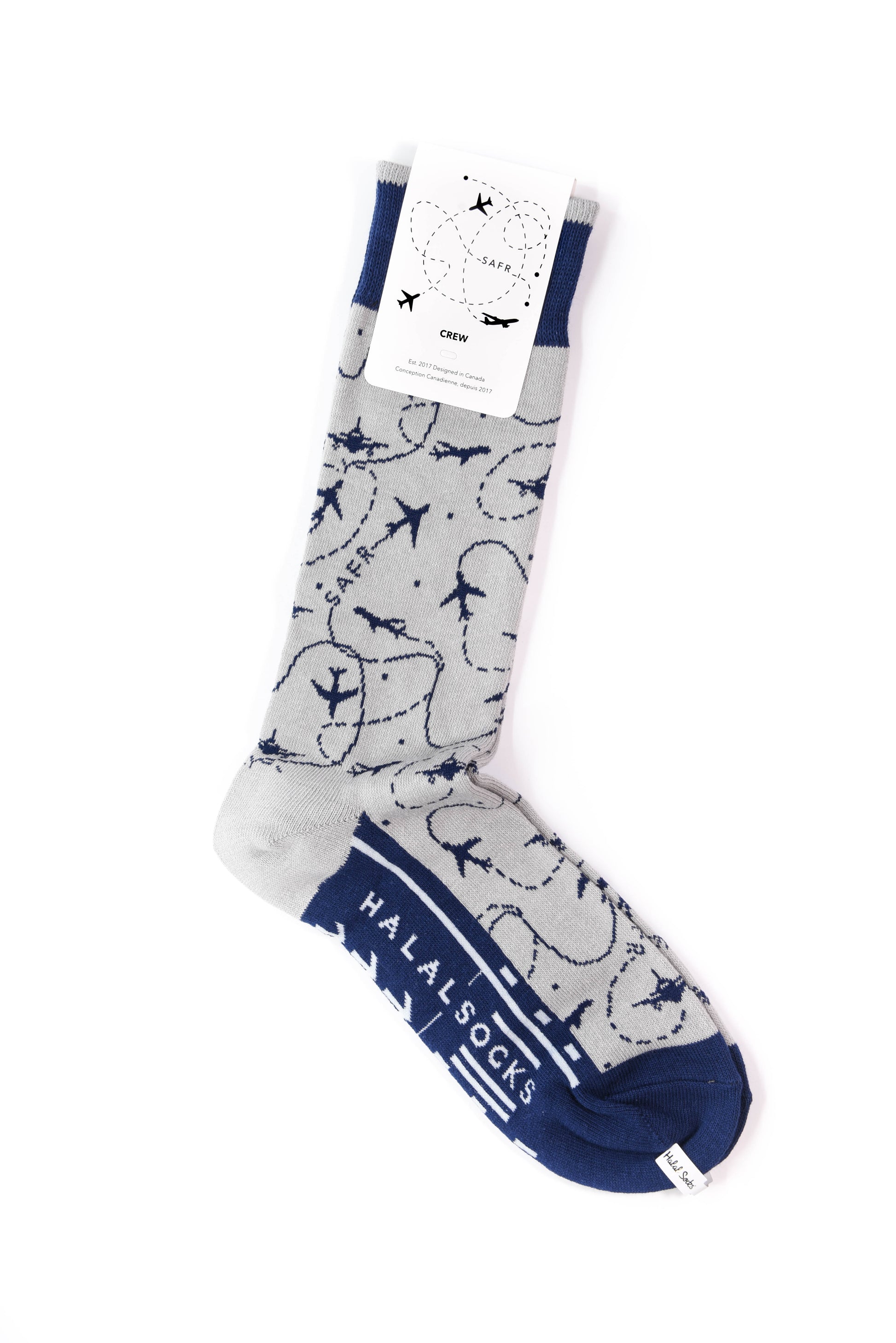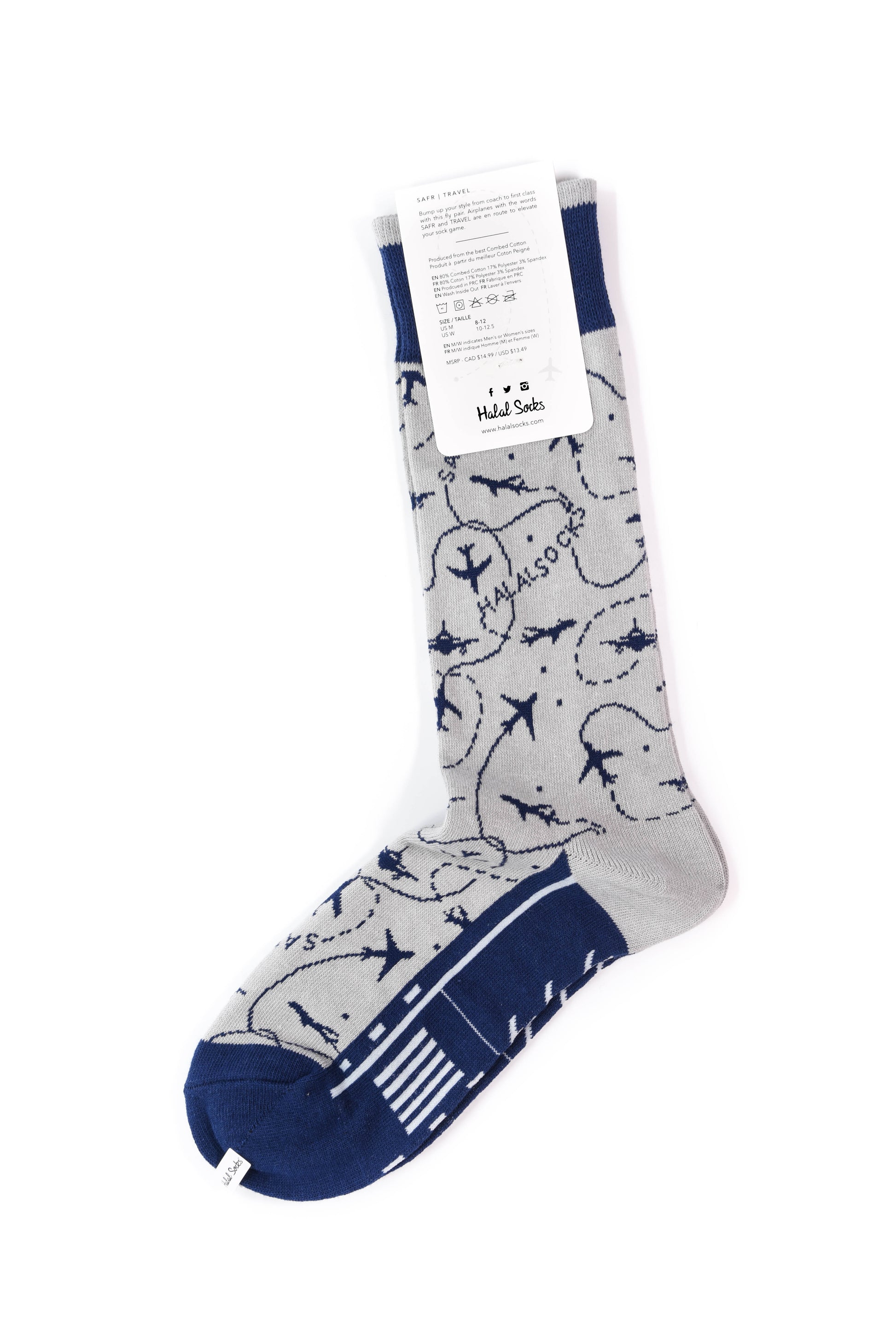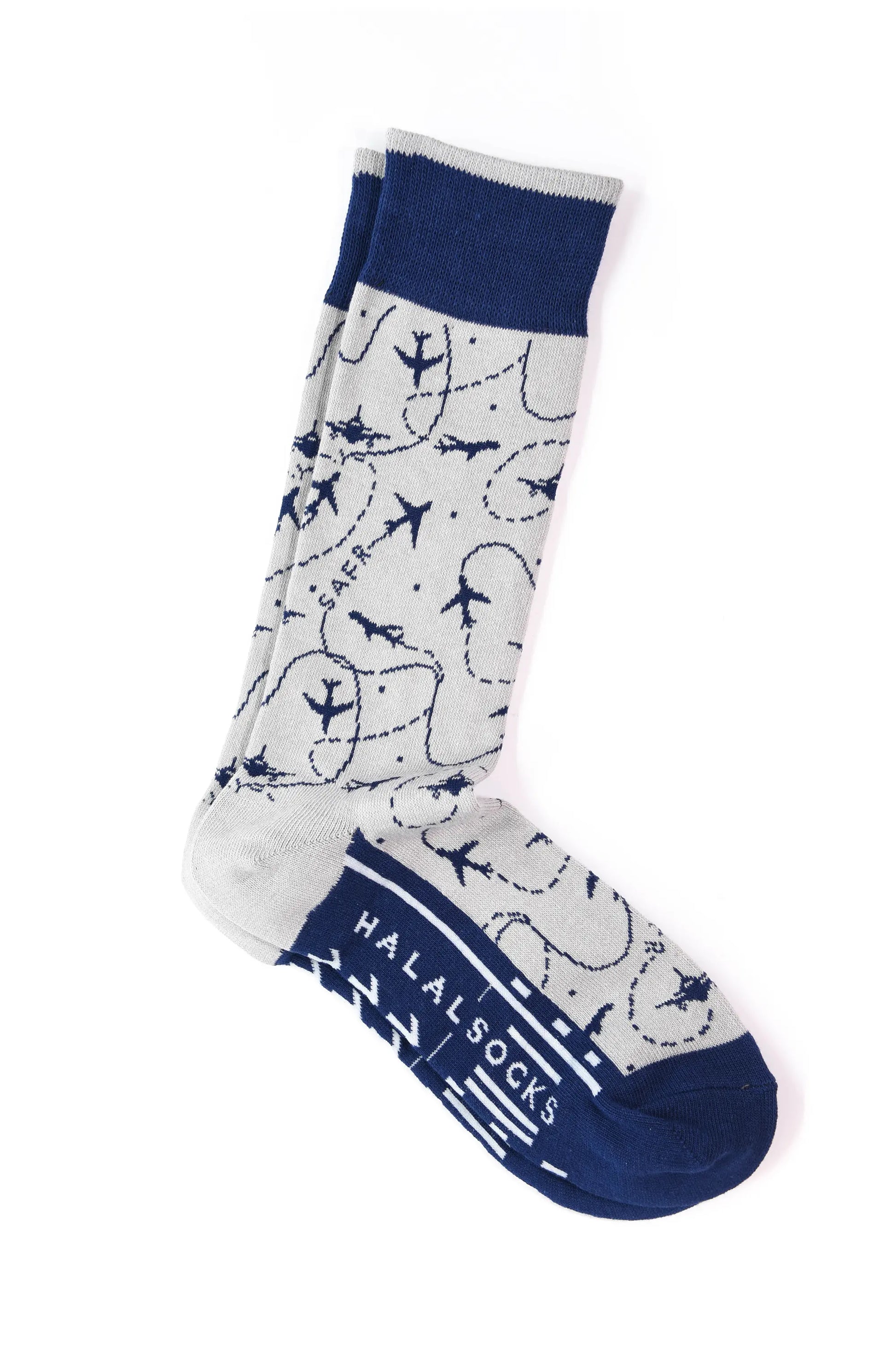 Bump up your style from coach to first class with this fly pair. Airplanes with the words SAFR and TRAVEL are en route to elevate your sock game.